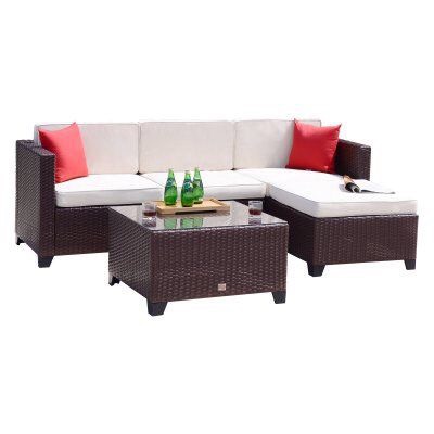 For the outdoor furniture, go to: https://www.wayfair.com/outdoor/pdx/beachcrest-home-saltville-4-piece-rattan-sectional-seating-group-with-cushions-bcmh4848.html